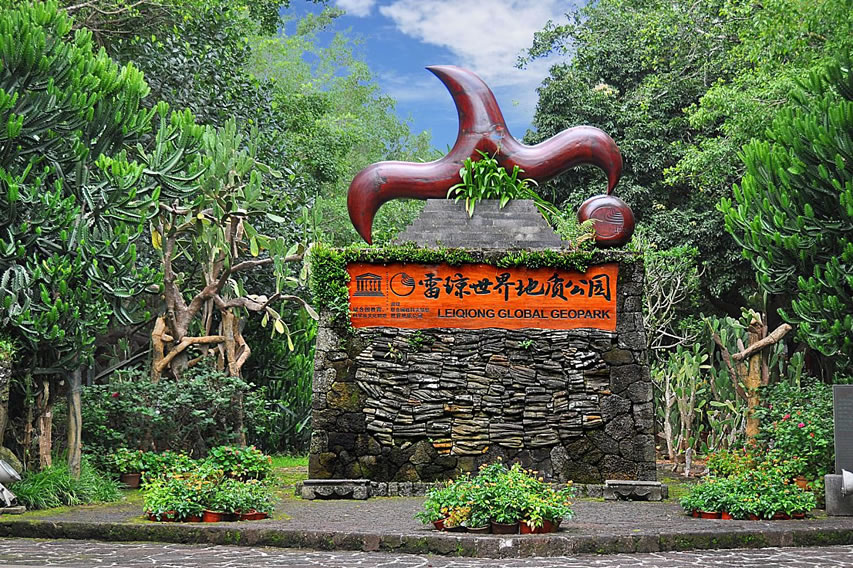 中國(guó)雷瓊世界地質(zhì)公園位于中國(guó)南端,地處廣東省湛江市雷州半島(雷)和海南省?谑校ō偅,由湛江園區(qū)、海口園區(qū)與瓊州海峽組成,面積為3050平方千米。公園地區(qū)多期次的火山噴發(fā)形成的獨(dú)特的地理、地質(zhì)環(huán)境,造就了公園廣闊的玄武巖臺(tái)地、豐富的火山地貌以及火山巖海蝕地貌與海積地貌等地質(zhì)遺跡景觀,也造就了當(dāng)?shù)鬲?dú)特的火山文化。公園以海口馬鞍嶺等為代表的第四紀(jì)火山帶聞名于世,更有以湖光巖為代表的瑪珥湖堪稱研究全球古氣候、古環(huán)境變化的“天然年鑒”。