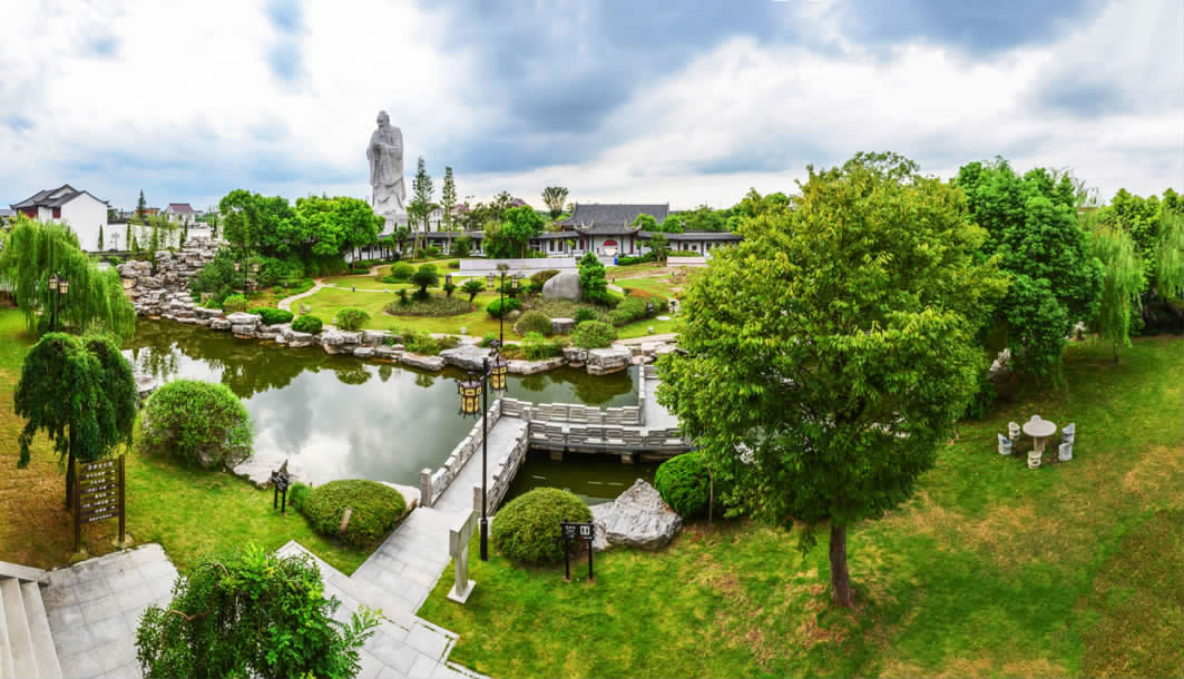 忠孝文化園位于江蘇省南通市通州區(qū)東社鎮(zhèn)鎮(zhèn)區(qū)北側500米,占地面積160畝,總投資3.2億元,分四期工程建設,由同濟大學設計為具有明末清初風格的江南園林式建筑。該園以陸鳳彬將軍祖宅為基礎建造,2008年11月竣工開園,是國內首個以"忠孝"為主題的人文景觀。園區(qū)主體建筑包含思苑樓、忠孝坊、中華柱、忠孝文化長廊及六角忠孝亭,陳列24忠24孝故事石刻、《孝經》石刻長卷和唐至近現(xiàn)代硯臺50余方。園內矗立國內最高孔子石雕像,通高32米,由480余塊石質部件拼接而成,重約千噸,以唐代吳道子畫像為藍本雕刻。聚寶閣收藏四大偉人紅木雕像、百名將軍墨寶及趙樸初等書法家作品。該園免費對外開放,設有愛國主義教育展廳、國防教育展區(qū)及多功能影視廳,年均舉辦道德講堂、主題展演等教育活動百余場。配套服務設施包含水上餐廳、垂釣中心及可容納300人的宴會廳。