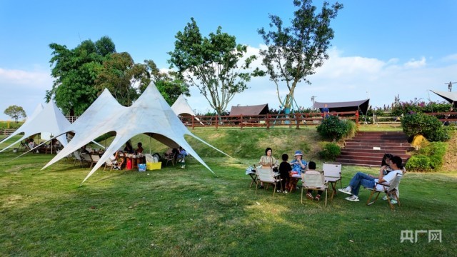 多元體驗讓假日消費延伸出更多維度。秋日艷陽下,孩子們在紅高粱地中盡情高歌;滿天星斗下,非遺傳承人揮舞的鐵花點亮夜空;星空影院前,游人圍坐煮茶觀影;露營基地內(nèi),燒烤的香氣飄滿整個田野……這座融合文化體驗與田園休閑的園區(qū),正成為人們的假日消費的新選擇。園區(qū)負責人陳霞介紹,園區(qū)內(nèi)專門設計了甲骨文識字、傳統(tǒng)文化研學、高粱采收等親子項目,讓游客在體驗中消費,在消費中感受文化。