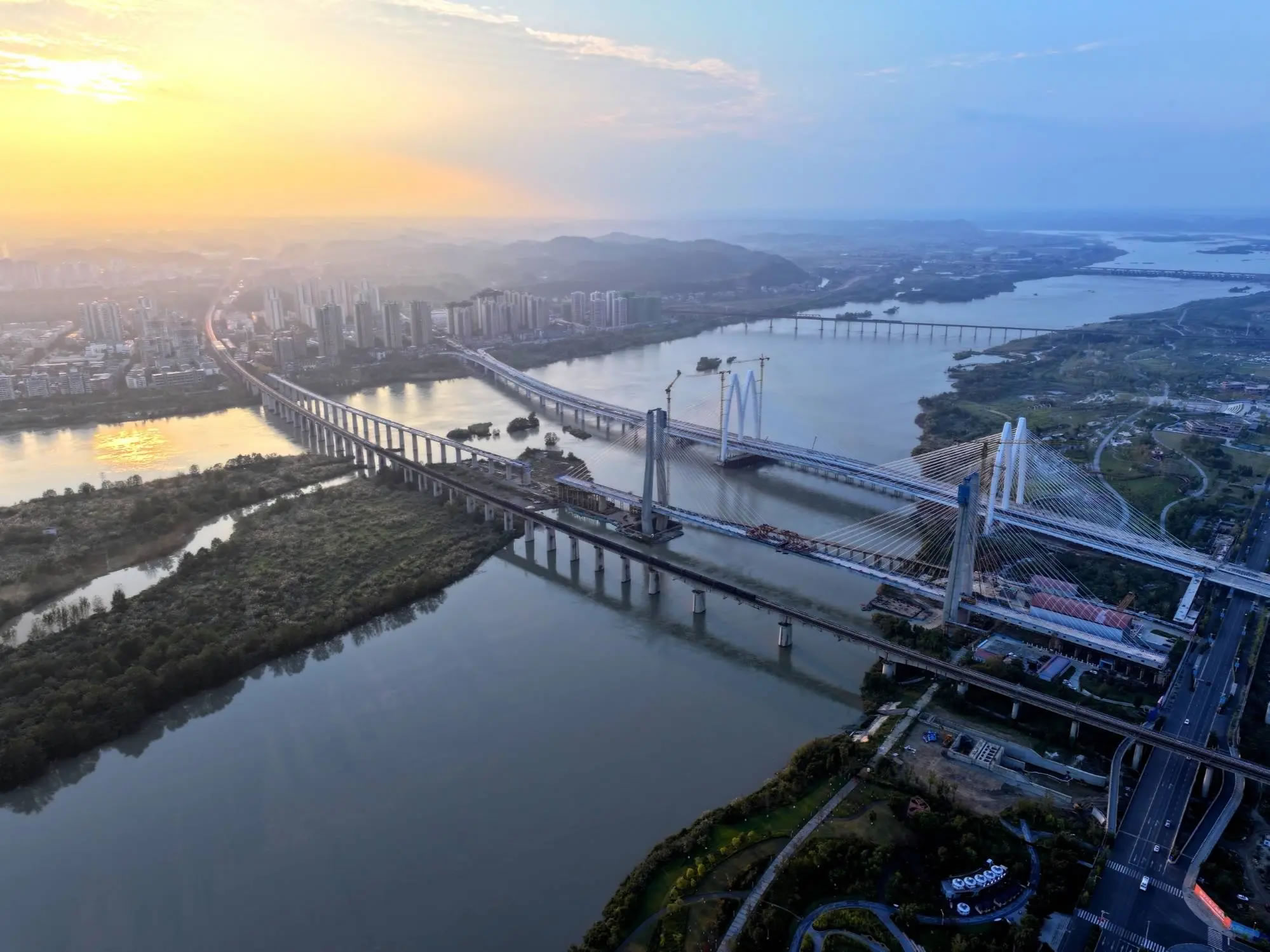 據(jù)中鐵十七局成達(dá)萬高鐵項(xiàng)目二工區(qū)總工程師單立國(guó)介紹,由于大橋橫跨涪江,施工團(tuán)隊(duì)創(chuàng)新采用“浮運(yùn)+橋面吊裝”方案,先將鋼箱梁通過浮箱從碼頭運(yùn)輸至江心指定位置,再運(yùn)用150噸橋面吊機(jī)進(jìn)行精準(zhǔn)提升。為確保合龍精準(zhǔn)可控,項(xiàng)目團(tuán)隊(duì)提前謀劃、周密部署。針對(duì)大跨度斜拉橋合龍段受力復(fù)雜、溫度變形敏感、精度控制要求高等技術(shù)難點(diǎn),團(tuán)隊(duì)選擇夜間“溫度低、溫差小”時(shí)段進(jìn)行合龍,有效減少溫度變化引起的結(jié)構(gòu)變形,并通過線形監(jiān)控、勁性鎖定等關(guān)鍵技術(shù)措施,最終將線形精度控制在毫米級(jí)范圍,實(shí)現(xiàn)高質(zhì)量合龍。