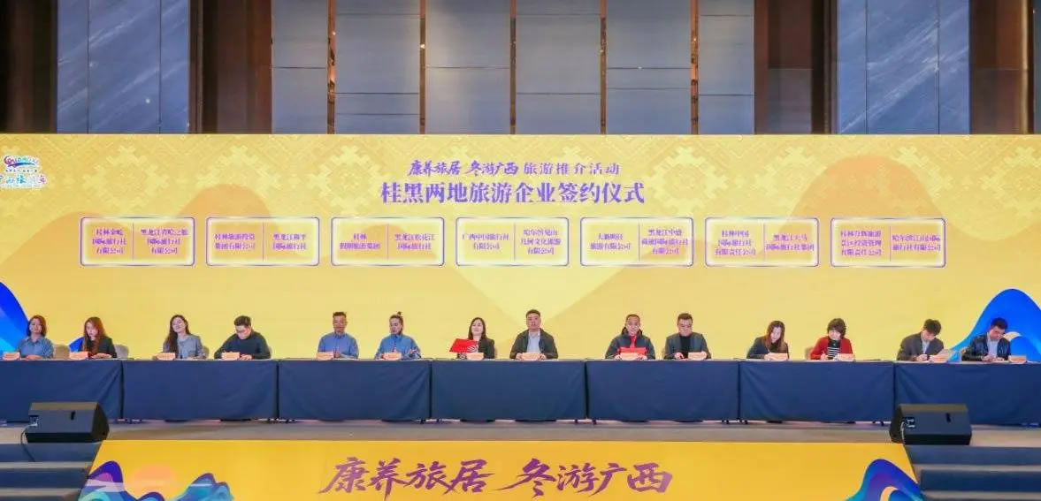 此次推介活動吸引了100多家桂黑兩地旅游企業(yè)進行深度交流,并開展桂黑兩地文旅企業(yè)產(chǎn)品對接會,達成多項合作。活動現(xiàn)場,7家廣西旅游企業(yè)與多家黑龍江省旅游企業(yè)成功簽約。